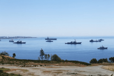 A fleet of naval warships.