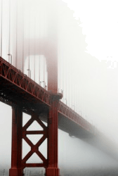 Fog surrounds the Golden Gate bridge in San Francisco.
