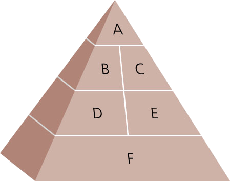 1. A food pyramid devised by the U.S. Department of Agriculture in 1992, in which grains and cereals represent the base beneath layers for fruits and vegetables, meats and dairy products, and fats and sweets at the peak.饮食金字塔:美国农业部于1992年所设计,以谷物与麦片为最下层,其次为水果蔬菜,在来为肉类与奶制品,而最上层为脂肪与甜食的食物金字塔