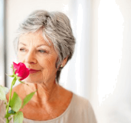 A woman with a fragrant rose.
