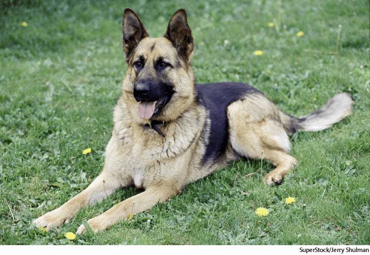 German shepherdn.(名词) German shepherd- Any of a breed of large dog developed in Germany, having a dense grayish to brownish or black coat and often trained to assist the police and guide the blind. Also called police dog 德种牧羊狗:生长于德国的大狗的一种,有浓密的灰褐色或黑色皮毛并通常被训练来帮助警察或盲人引路 也作 police dog