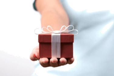 A woman gives a gift.