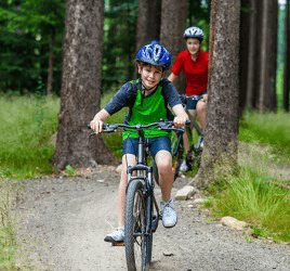 Zach got a new bicycle yesterday and he took it out for a ride on the trail with his sister.