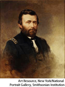 Grant, Ulysses Simpson Originally Hiram Ulysses Grant.(1822-1885)NONE(无词性) Ulysses S. Grant1869 portrait bySamuel Bell Waugh (1814-1885)- The 18th President of the United States (1869-1877) and a Civil War general. After his victorious Vicksburg campaign (1862-1863), he was made commander in chief of the Union Army (1864) and accepted the surrender of Gen. Robert E. Lee at Appomattox (1865). Grant's two-term presidency was marred by widespread graft and corruption.格兰特,尤利西斯·辛普森:(1822-1885) 美国第十八任总统(1869-1877年)和内战时期的将领。 在威克斯堡战役( 1862-1863年)中获胜后,他被任命为联邦军队总司令(1864年)并接受了罗伯特·李将军在阿波马托克斯的投降(1865年)。其两届总统任期因普遍的贪污和腐化而遭到非议