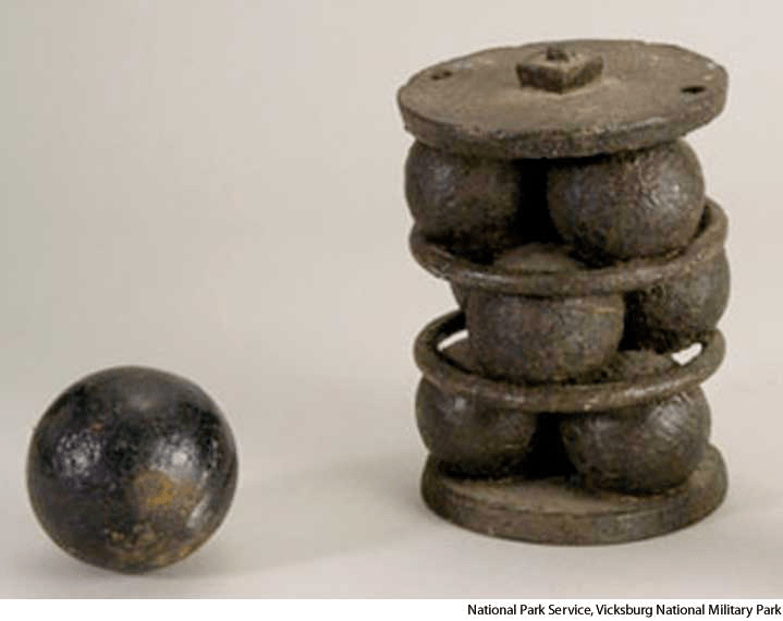 葡萄弹,霰弹:以前用作火包装填物的一簇小铁丸