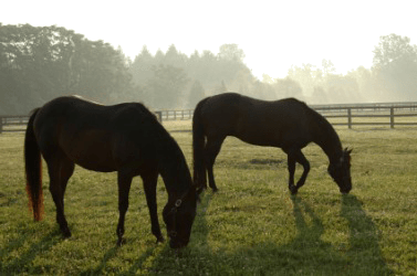 A pair of grazing horses.