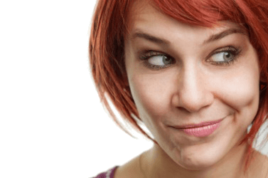 A young woman grimaces.