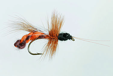 An artificial, usually wingless fishing fly trimmed with hackles.