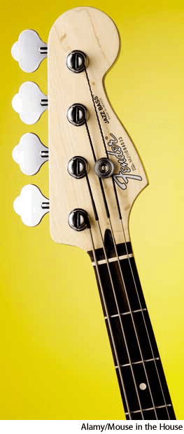 on an electric bass guitar