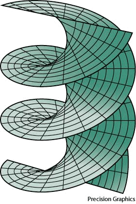 hel·i·coid AHD[hĕlʹĭ-koid', hēʹlĭ-] D.J.[ˈhelɪˌkɔɪd, ˈhiːlɪ-]K.K.[ˈhɛlɪˌkɔɪd, ˈhilɪ-]adj.(形容词) helicoida helicoid generated by rotating and translating a line at a constant rate about an axis to which it is perpendicular- Arranged in or having the approximate shape of a flattened coil or spiral.具螺纹的,具近似螺纹的:按近似平展的盘线或螺旋线形状排列的或具有近似平展的盘线或螺旋线形状的