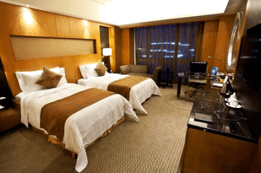 A room in a modern hotel.