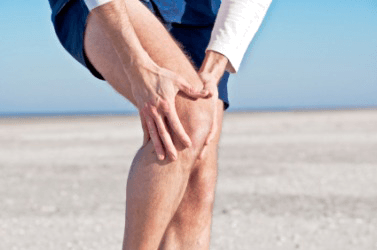 It would appear that this mans knee is hurt.