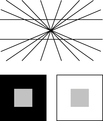 il·lu·sion AHD[ĭ-lo͞o′zhən] D.J.[ɪˈluːʒən]K.K.[ɪˈluʒən]n.(名词) top: In a Hering figure, straight horizontal rules appear curved.bottom: In Gestalt theory boxes, a gray box against a black background appears lighter than the same gray box against a white background.Clarinda/Academy Artworks- An erroneous perception of reality.错觉,假象:对现实错误的看法