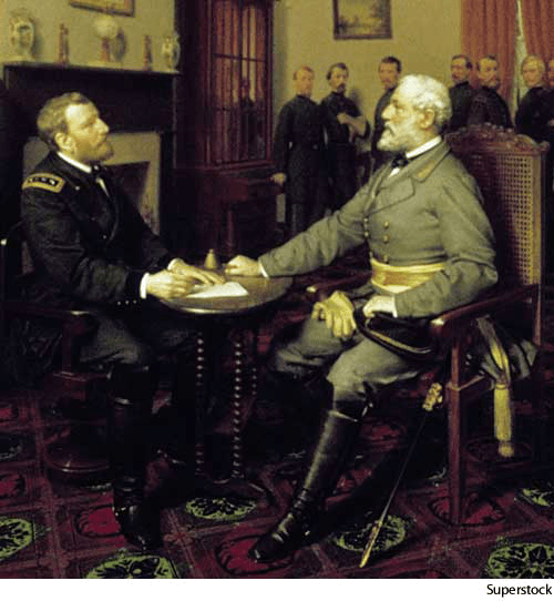Ap·po·mat·tox AHD[ăp'ə-mătʹəks] D.J.[ˌæpəˈmætəks]K.K.[ˌæpəˈmætəks]NONE(无词性) Appomattoxdetail of the 1867 painting by Louis Guillaume (1816-1892) depicting General Lee surrendering to General Grant at Appomattox Court House, Virginia, on April 9, 1865- A town of south-central Virginia east of Lynchburg. Confederate general Robert E. Lee surrendered to Union general Ulysses S. Grant at Appomattox Courthouse on April 9, 1865, ending the Civil War. The site is now a national historical park. Population, 1,345.阿波马托克斯:美国弗吉尼亚州中南部一城镇,位于林奇伯格东部。1865年4月9日南部联邦将军罗伯特·E·李在阿波马托克斯县城向联邦军尤利西斯·S·格兰特将军投降,美国南北战争就此结束。该址现为国家历史公园。人口1,345