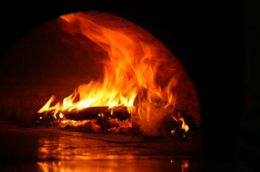 An inferno blazes within an oven.
