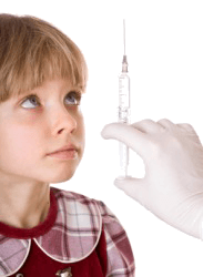 A little girl about to receive an inoculation.