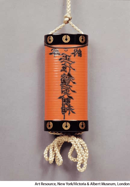 in·ro AHD[ĭnʹrō] D.J.[ˈɪnrəʊ]K.K.[ˈɪnro]n.(名词)【复数】 inro  inro1685 Japanese red and black lacquer inro by Shibata Zeshin(1807-1891)- A small, usually ornamented box that is hung from the waist sash of a Japanese kimono and has compartments for holding small objects such as cosmetics, perfumes, or medicines.印笼:日本人穿和服时挂在腰间用以存放印章、药品及其他必需品的装饰性套盒