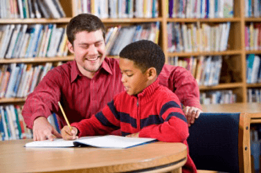 A boy receives instruction from his teacher.