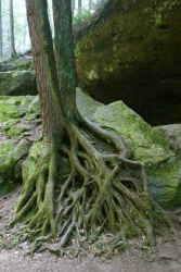 Intertwining tree roots.