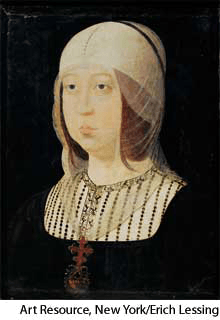 Is·a·bel·la I AHD[ĭz'ə-bĕlʹə] 称作 “天主教徒伊莎贝拉”(1451-1504) D.J.[ˌɪzəˈbelə]K.K.[ˌɪzəˈbɛlə]NONE(无词性) Isabella Ic. 1500 copy of a portrait by Juan de Flandes (1465?-1519)- Queen of Castile (1474-1504). Her marriage in 1469 to Ferdinand V of Castile and León (later Ferdinand II of Aragon) marked the beginning of a unified Spanish state. Isabella sponsored the voyages of Christopher Columbus.伊莎贝拉一世:卡斯蒂利亚国女王(1474-1504年)。她于1469年与卡斯蒂利亚和莱昂的费迪南德五世(即后来的阿拉贡的费迪南德二世)结婚,为西班牙国家统一的开始标记。伊莎贝拉资助了克里斯托弗·哥伦布的航海探险