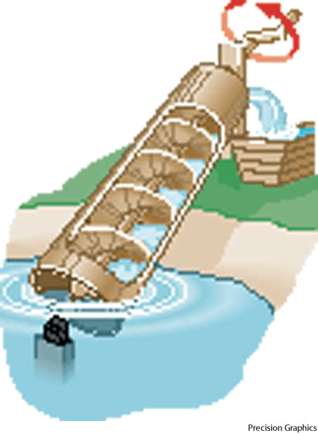 Archimedean screwn.(名词) Archimedean screw- An ancient apparatus for raising water, consisting of either a spiral tube around an inclined axis or an inclined tube containing a tight-fitting, broad-threaded screw. Also called Archimedes' screw 阿基米德螺旋泵,螺旋升水泵:抬升水的古老器具,由任一环绕倾斜轴的螺旋管或包含紧固的宽螺纹螺丝的倾斜管构成 也作 Archimedes' screw