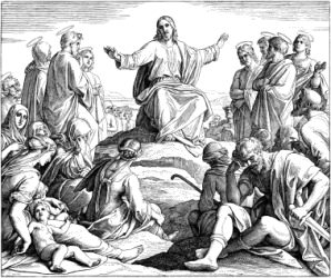 A depiction of Jesus delivering the Sermon on the Mount.