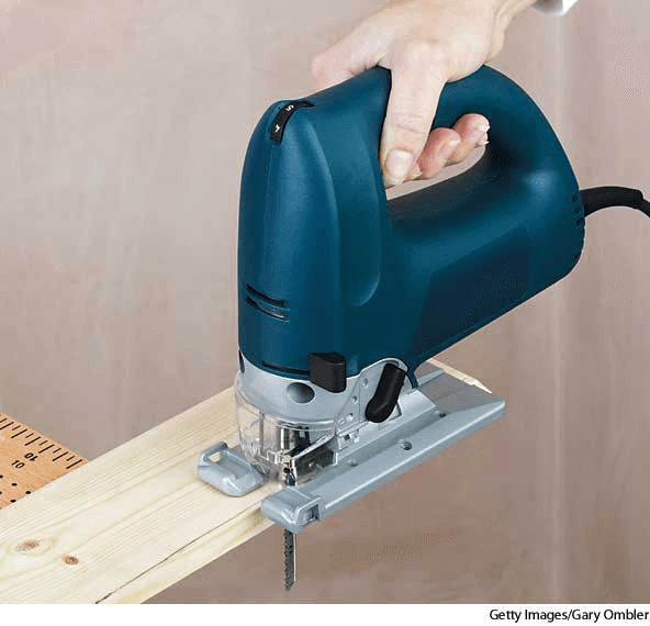 坚锯:一种具有垂直的窄小刀片的电锯,用于切割较尖的弯曲